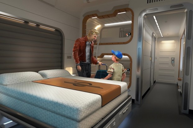 巡航艦的客房會為賓客帶來舒適的住宿環境,每間客房設有一張大床以及上下層兒童床,更可透過房內的觀景窗欣賞到沿途的星際景色。