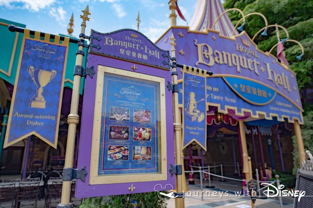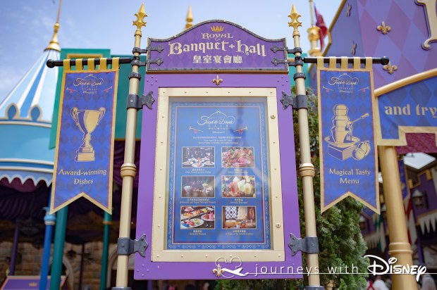 樂園特別隆重其事,為餐廳內外各處加上裝飾,門口餐牌也換上介紹今次美食節的海報。提提您,美食節只限星期五至日及公眾假期舉行,皇室宴會廳 將於平日恢復供應往常的套餐。